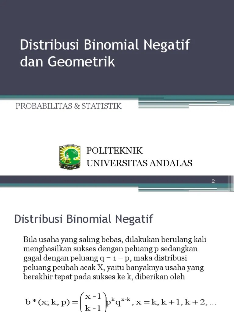 Contoh Soal Distribusi Binomial Negatif - Contoh Soal Peluang Binomial Lektur : Fungsi distribusi probabilitas diskrit ppt download from slideplayer.info.